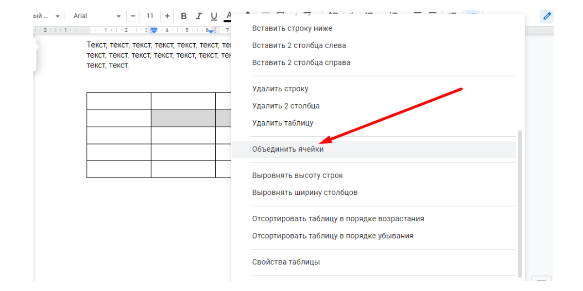 Когда таблица добавлена в текст, вы можете работать с ней так же, как и в Google Документах: добавлять, удалять, объединять строки и ячейки в любых количествах.