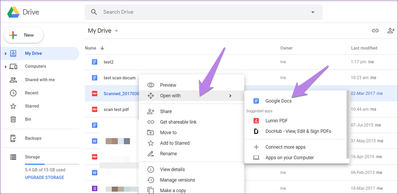 Откройте веб-сайт Google Диска и щелкните правой кнопкой мыши файл PDF, текст которого вы хотите извлечь в Документах. В меню выберите «Открыть с помощью» и «Документы Google». Вы попадете на веб-сайт Docs, и ваш PDF-файл будет успешно преобразован в текст.