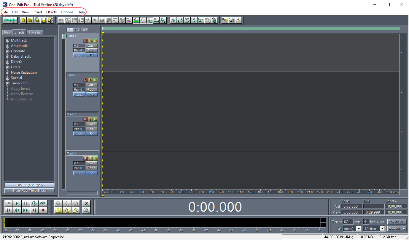 Но и это еще не все. Как вы отнесетесь к возможности применения: 7 средств амплитудной обработки; 9 эффектов, основанных на задержке сигнала; 7 разновидностей частотных фильтров; 4 модулей подавления шумов, устранения щелчков и искажений; 2 алгоритмов сдвига тона по высоте и сжатия-растяжения звукового фрагмента во времени; 4 специальных эффектов? Под специальными эффектами разработчики программы понимают очень интересные вещи: