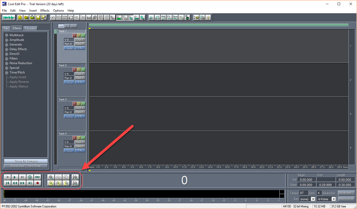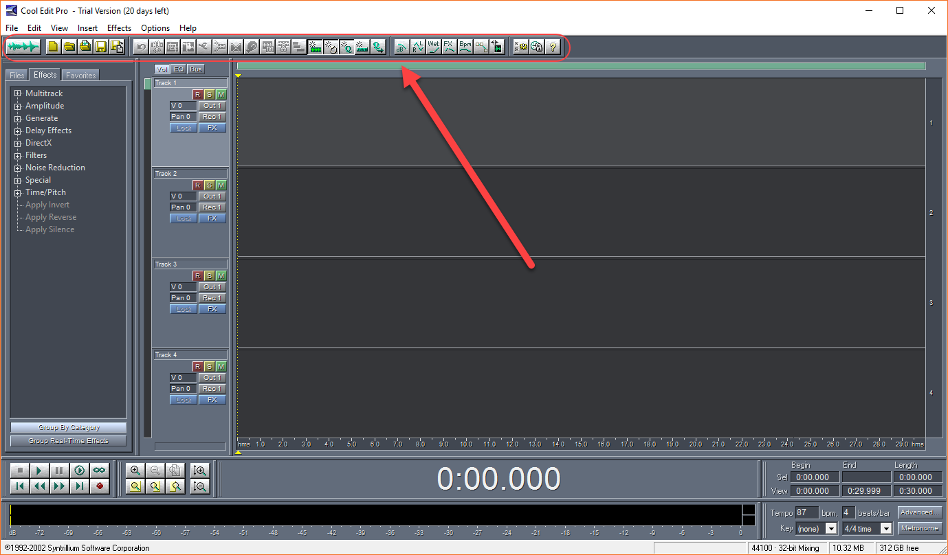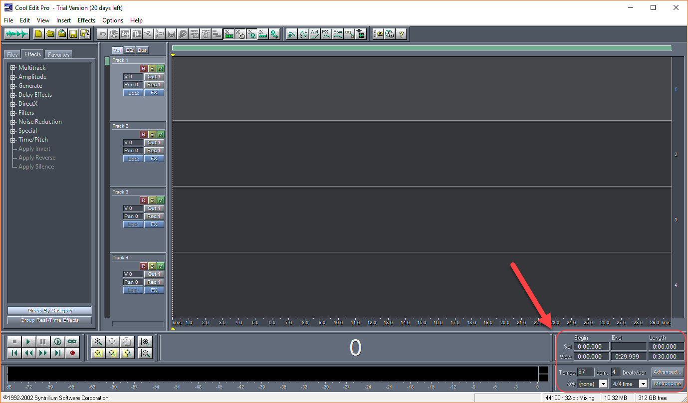 «Multitrack» необходим также для точной настройки начала проигрывания и записи, различных звуковых параметров.