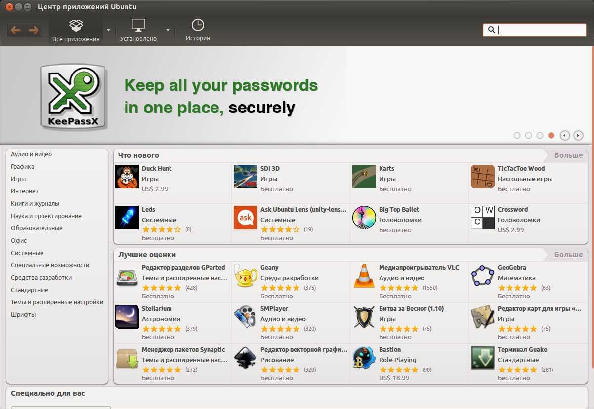 В Ubuntu существуют две основные графические утилиты управления программами: «Центр приложений Ubuntu» и «Менеджер пакетов Synaptic». Кроме того, все действия можно легко совершать и через консоль. Каждому из этих инструментов посвящена одна из следующих статей. Так же после их описания я расскажу про программу управления обновлениями системы.