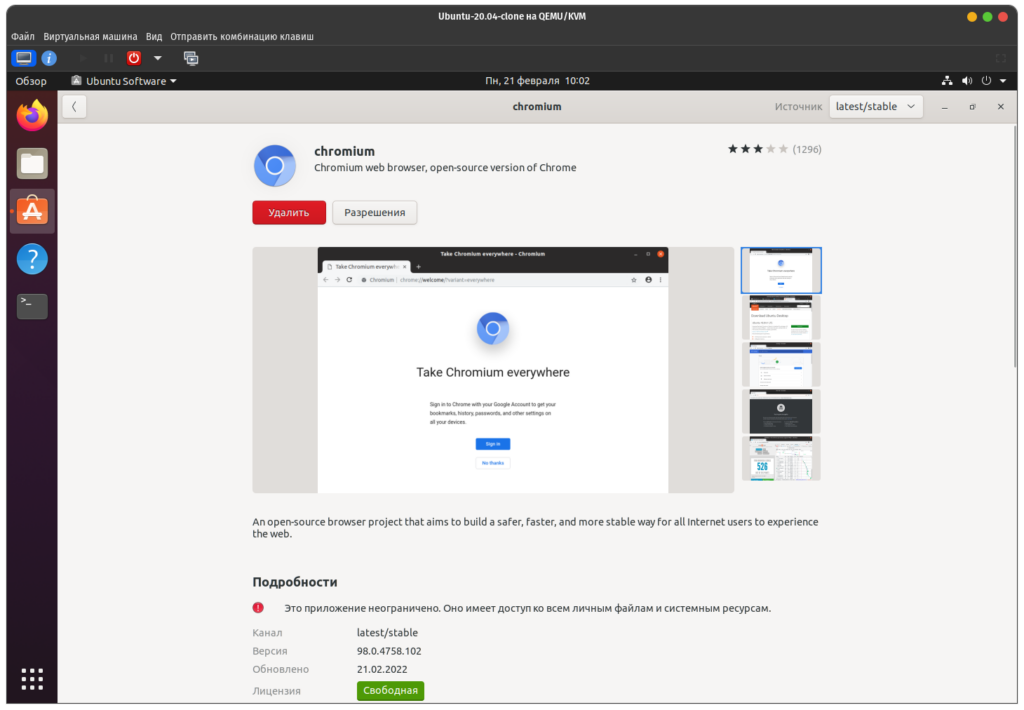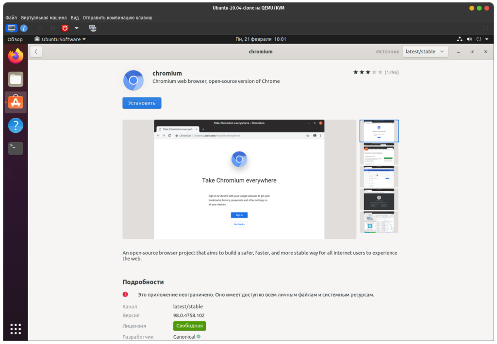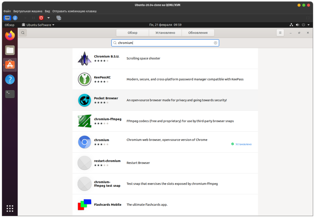 Для поиска нужной программы в Менеджере программ в поисковой строке точно так же как и в Synaptice вводим название необходимой программы, например все тот же Chromium, и из списка выбираем нужное: