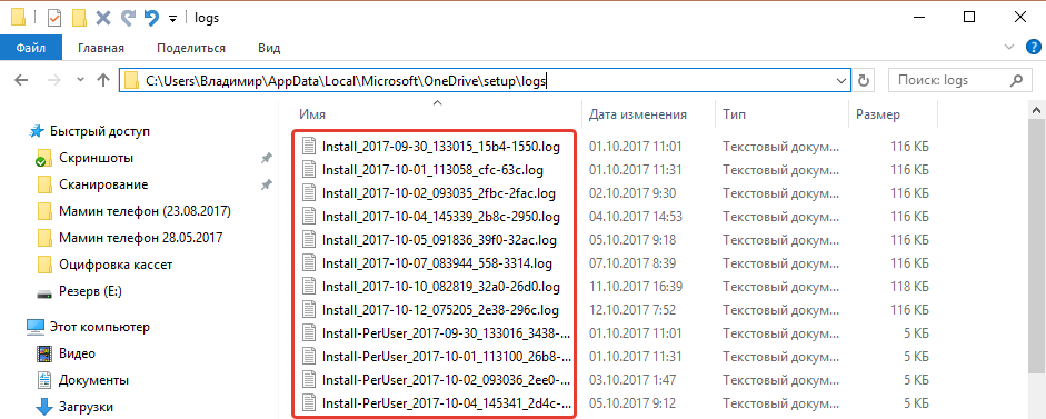 - Удаляем все файлы в папке C:\\Users\\Имя пользователя\\AppData\\Local\\Microsoft\\OneDrive\\setup\\logs