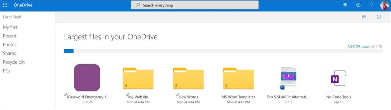 OneDrive — это централизованное решение для синхронизации данных из всех приложений Microsoft 365. Программное обеспечение, такое как Microsoft Word, PowerPoint, Excel, OneNote, использует OneDrive для хранения и синхронизации файлов и записной книжки. Документы из Word, PowerPoint и Excel могут не требовать большого объема памяти, но со временем они заполнят значительный объем хранилища.