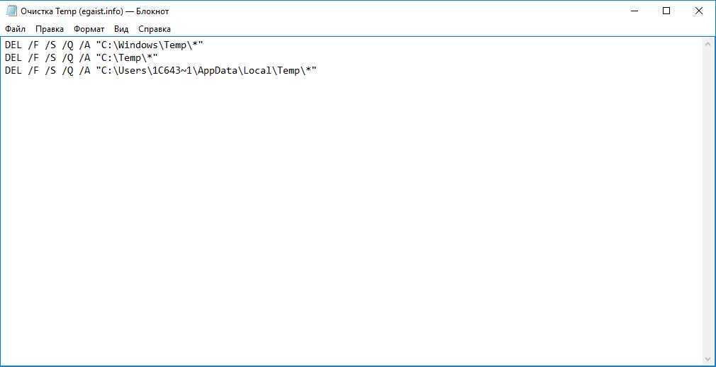 Но я решил пойти немного дальше и написать bat-файл, который на всякий случай каждый раз при запуске Windows будет «чистить мусор» в нескольких папках Temp, имеющихся в системе. Для этого создал текстовый файл «Очистка Temp» со следующим содержимым: