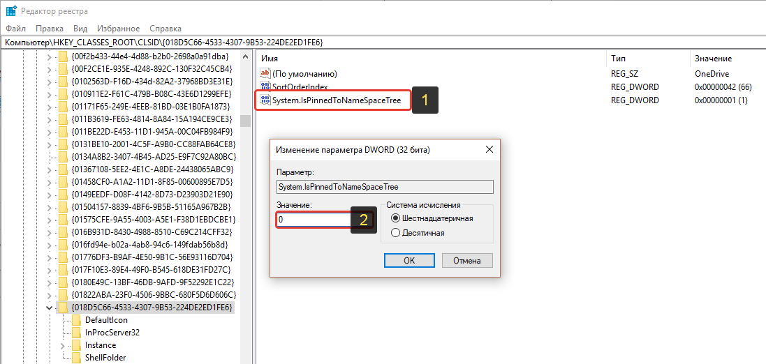 Кликните дважды мышкой по параметру System.IsPinnedToNameSpaceTree и в открывшемся окне, в строке “Значение” укажите “0”. И нажмите “ОК”.