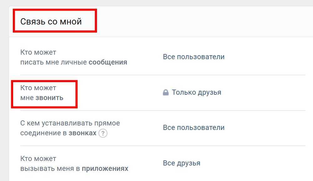 По умолчанию профиль «ВКонтакте» настроен таким образом, что позвонить вам может любой другой пользователь социальной сети. Чтобы ограничить звонки «ВКонтакте», необходимо открыть настройки своего профиля и в разделе «Приватность» кастомизировать пункт «Кто может мне звонить» (строка «Связь со мной»):