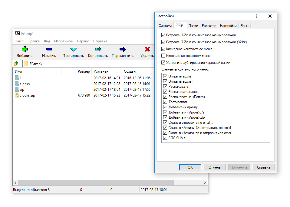 Программы — архиваторы обычно добавляют в контекстное меню правой кнопки мыши довольно много пунктов, ненужные из которых можно отключить в настройках приложения. Запуск операции по архивированию или разархивации выполняется непосредственно из окна подобной программы или из контекстного меню Проводника.