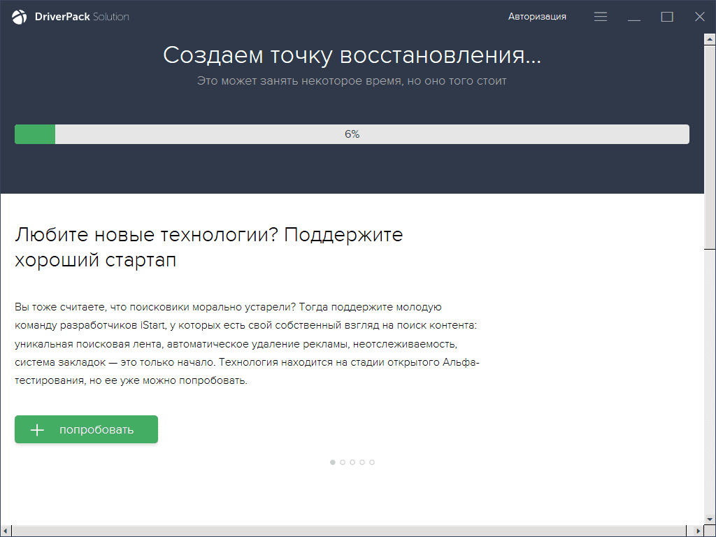 Разработчиками предусмотрена настройка резервной копии. При первом использовании функция включается автоматически. Поэтому даже новое ПО не испортит работу компьютера в случае установки неподходящих драйверов, скачанных программой DriverPack Online.