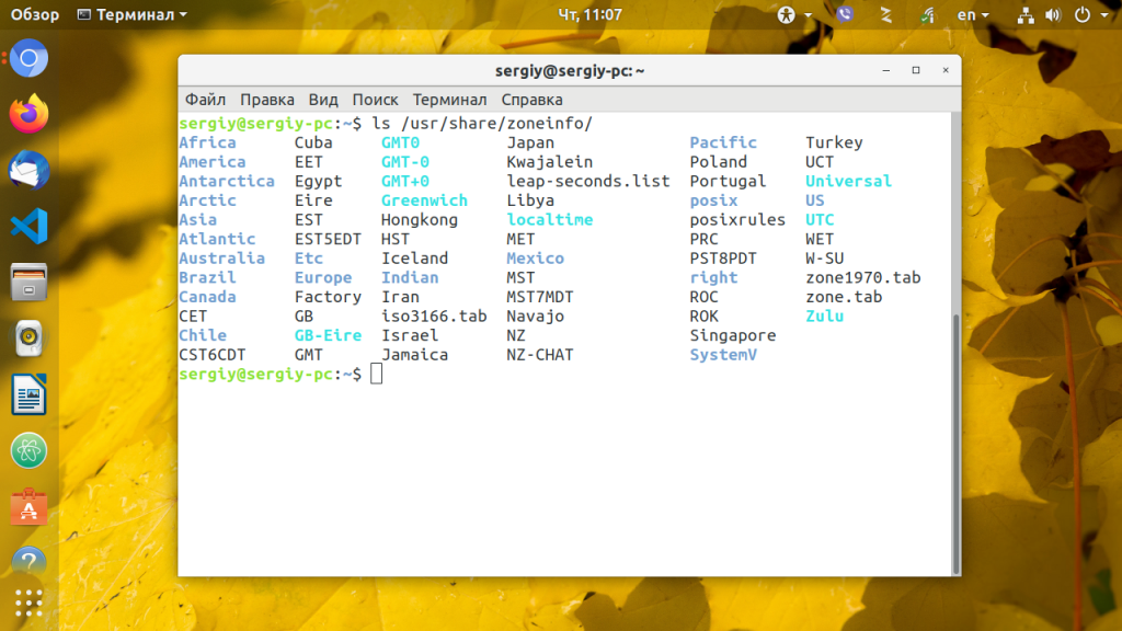 Наиболее популярный и поддерживаемый в большинстве дистрибутивов способ установки часового пояса для всех пользователей — с помощью символической ссылки /etc/localtime на файл нужного часового пояса. Список доступных часовых поясов можно посмотреть командой: