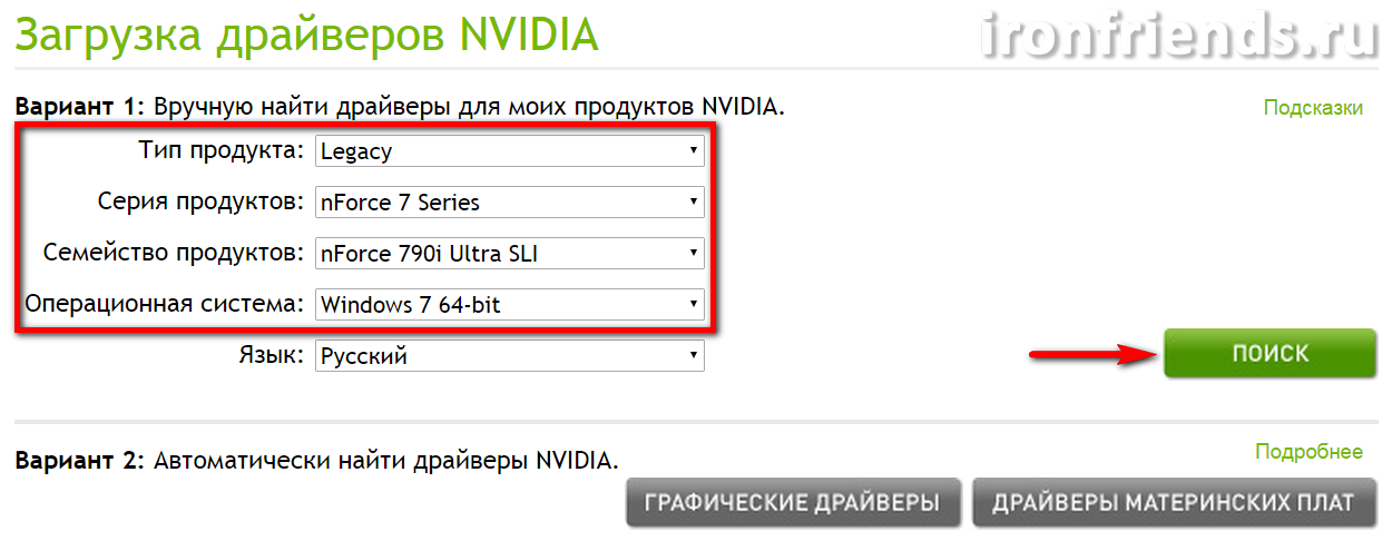 Компания nVidia производила чипсеты под торговой маркой nForce и есть еще достаточно много компьютеров с такими чипсетами. Если это ваш случай, то идем на сайт nVidia, заполняем форму и нажимаем «ПОИСК».