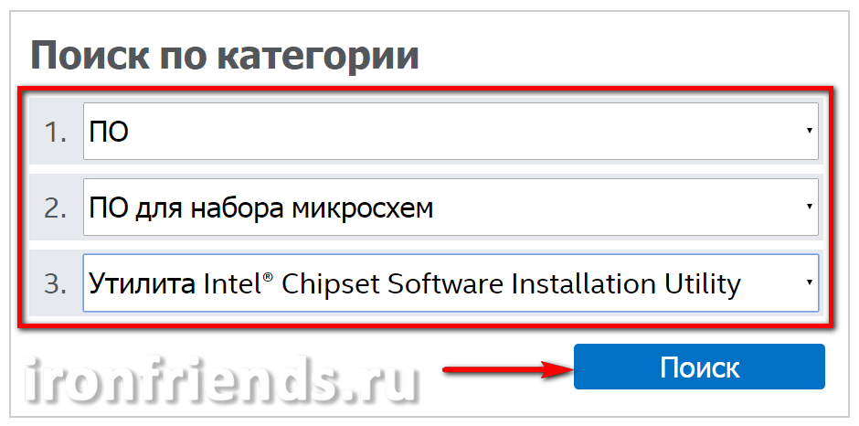 На сайте разработчика чипсета драйвер ищется таким же образом, как и на сайте материнской платы. Ссылки в нужные разделы сайтов разработчиков чипсетов есть в разделе «».