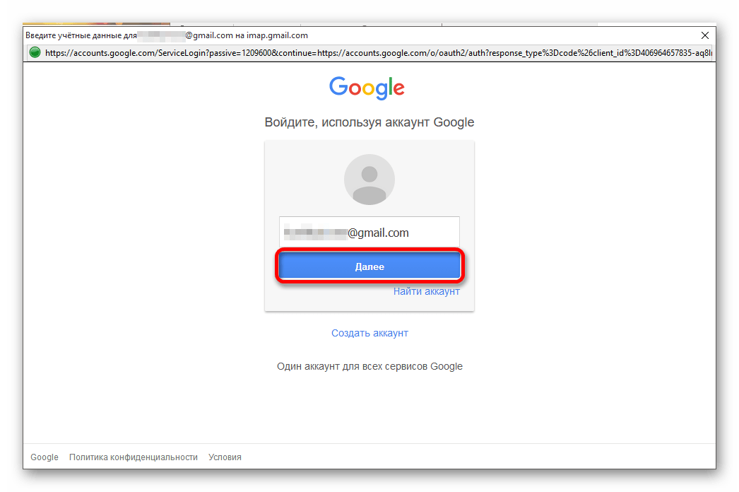 Войдите в учётную запись Джимейл в следующем окне.
