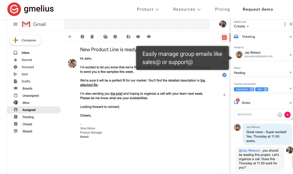 Gmelius расширение для Gmail. Источник