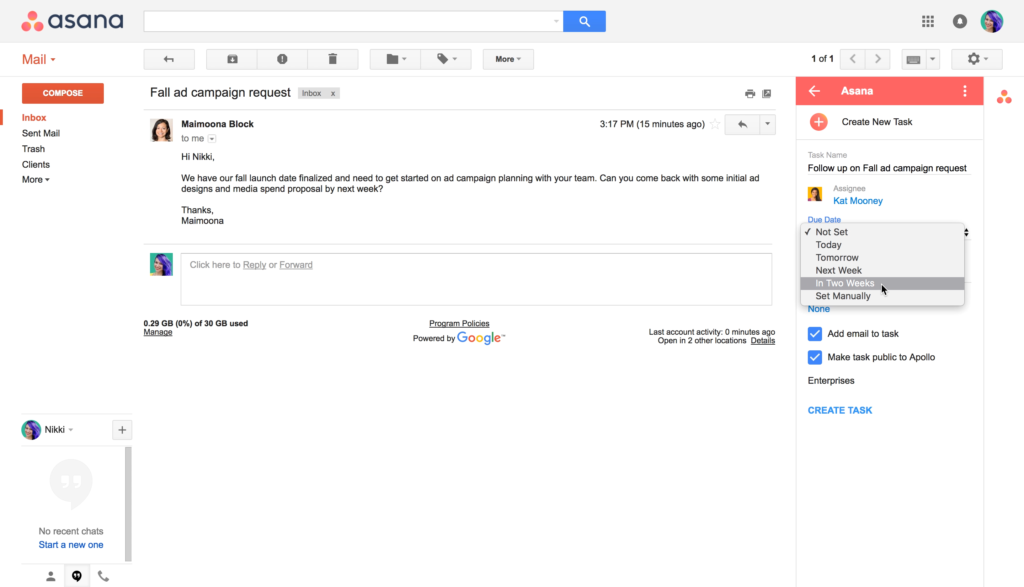 Asana расширение для Gmail