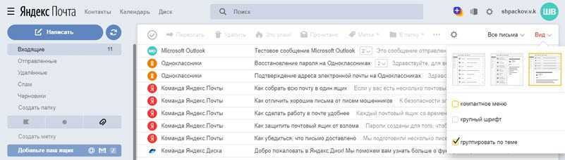 В число базовых возможных настроек почты входит небольшое количество пунктов, которые позволяют как выбрать приятное оформление, так и настроить сортировку приходящих сообщений.
