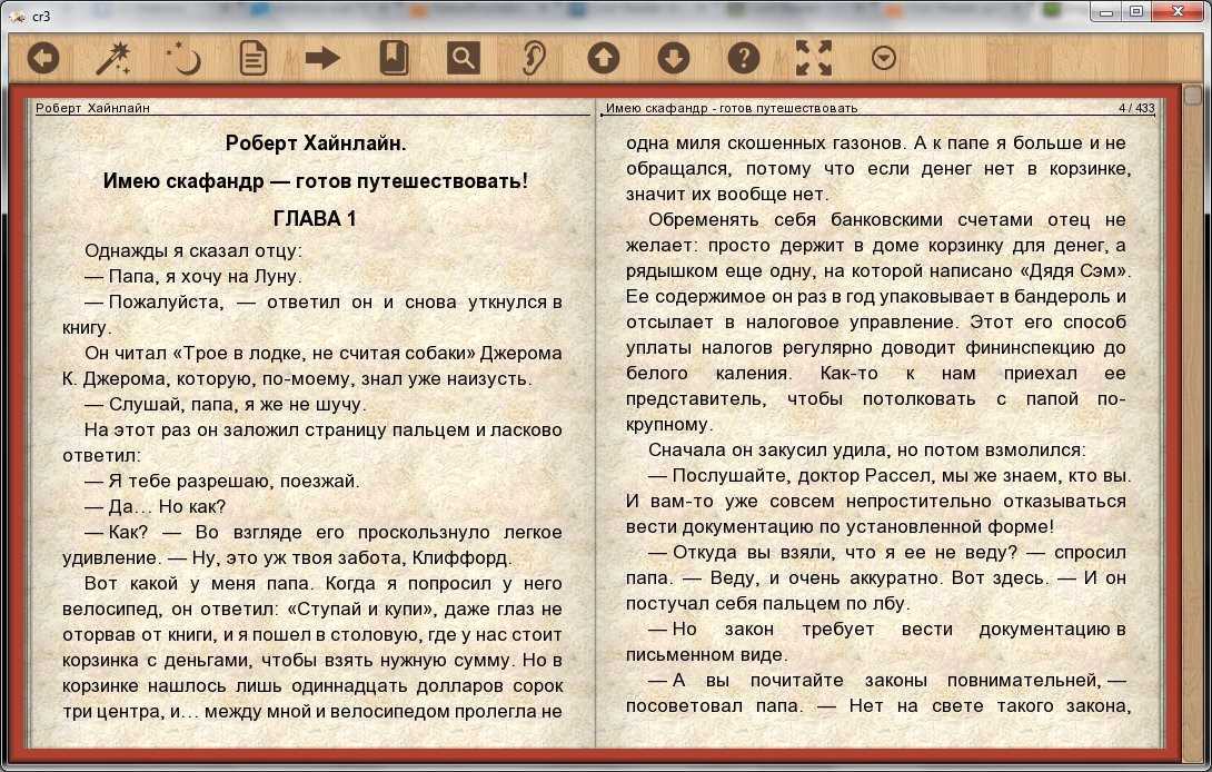 Cool Reader является одной из самых удобных читалок – этому способствует тщательно проработанный интерфейс, где все функциональные возможности сгруппированы в единую графическую панель.