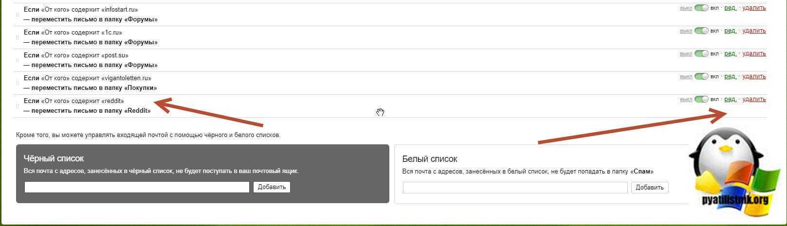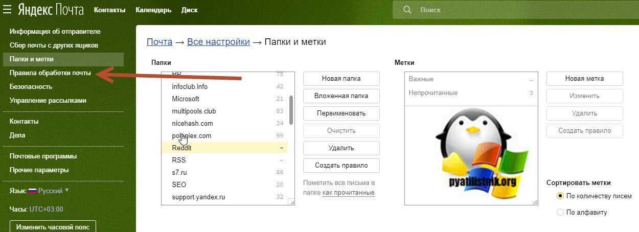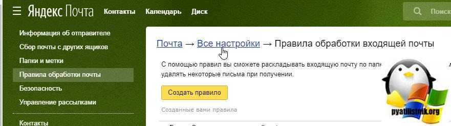 Теперь, когда нам есть куда переносить нашу почту, давайте настроим ее обработку. Для этого выберите пункт «Правила обработки почты»