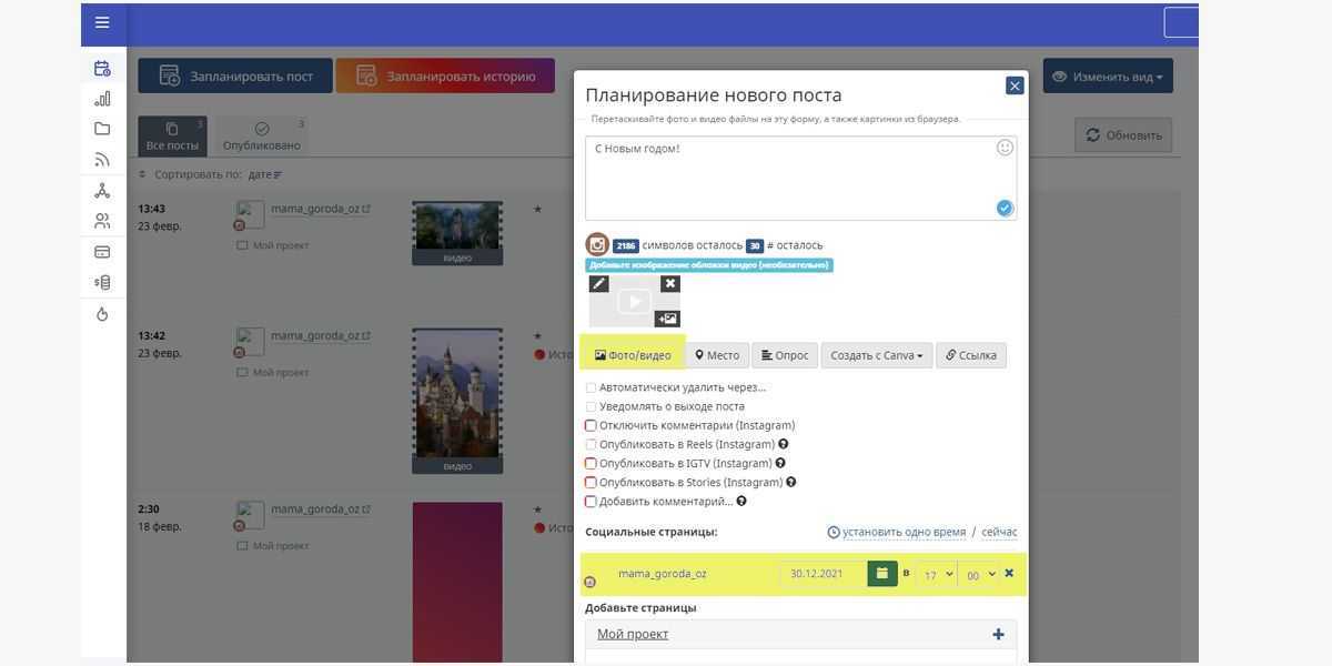 - Подобным образом подготовьте сразу несколько постов, назначьте дату и время выхода, и перестаньте волноваться, что не успеваете выложить пост вовремя.