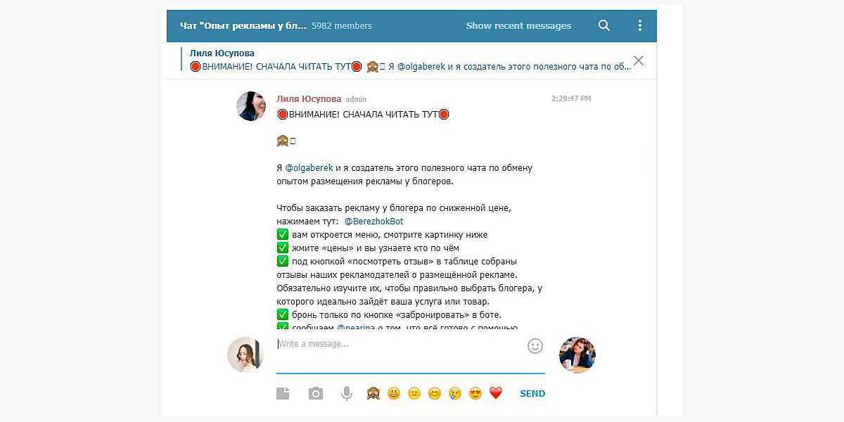 Один из чатов, в котором пользователи делятся опытом работы с блогерами. Здесь же можно найти блогера для взаимного пиара, при правильном выборе которых можно быстро стать популярным в Инстаграме*
