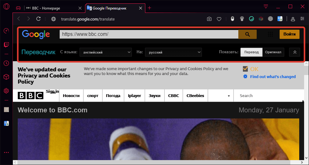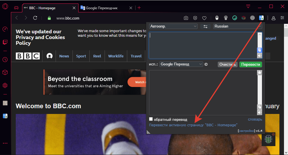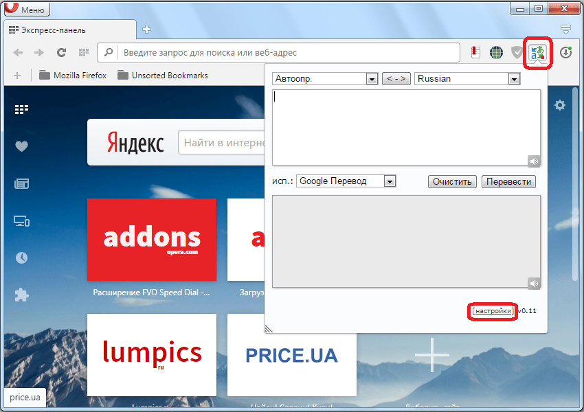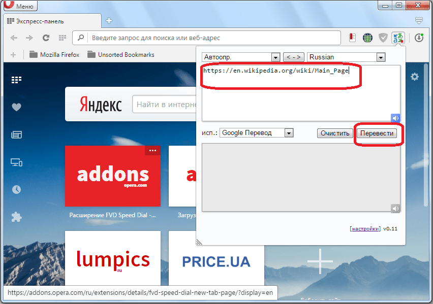 Перевод иностранных сайтов на русский язык в браузере Opera