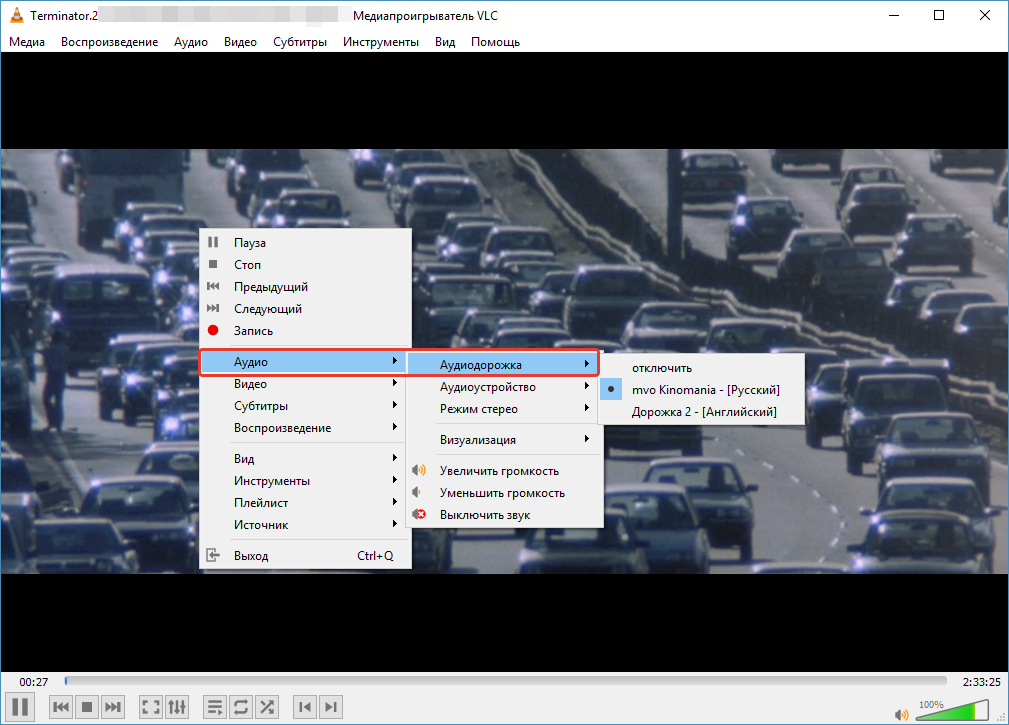 Теперь фильм будет воспроизводиться с выбранной нами звуковой дорожкой.
