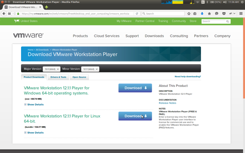 Прежде чем что-либо делать, нам нужно установить саму программу. Это коммерческое программное обеспечение и оно не распространяется под открытой лицензией. Более того, для компаний использование VMware Pro платно. Но для обычных пользователей есть бесплатная версия VMWare Player с ограниченной функциональностью.