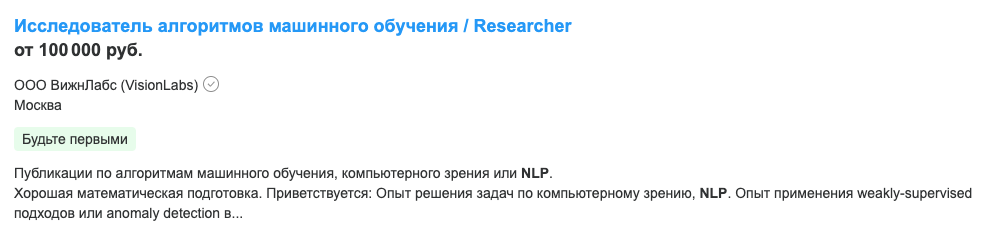На момент написания статьи на hh.ru компьютерному лингвисту или специалисту по обработке естественного языка предлагали оклад от 95 тыс. рублей.