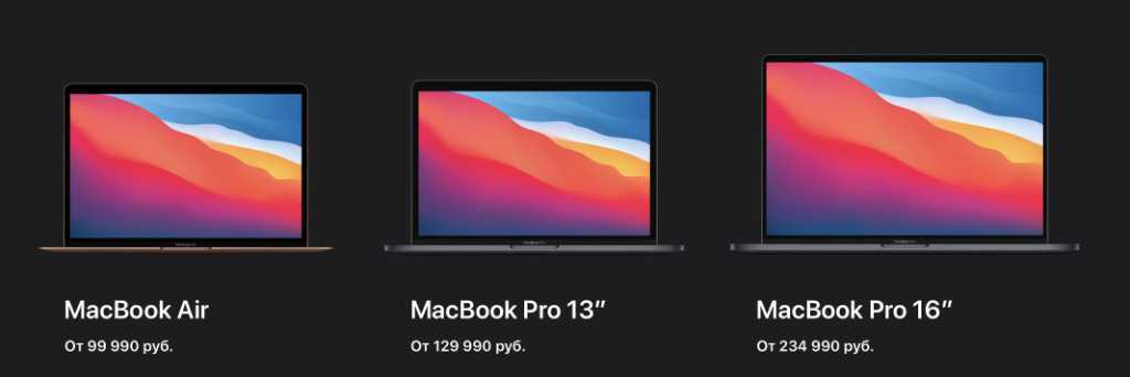 Массовый MacBook Air, более мощный компактный MacBook Pro на 13 дюймов, а также 16-дюймовый MacBook Pro с максимальной производительностью для тех, кто работает с визуальным контентом и другим сложным софтом. Всего три модели.