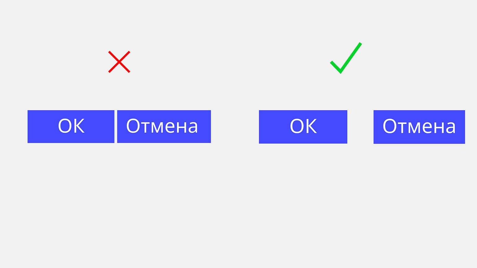 Ещё один вывод — нельзя ставить разные по смыслу кнопки рядом. Иначе пользователь может ошибиться и сделать неверный клик: