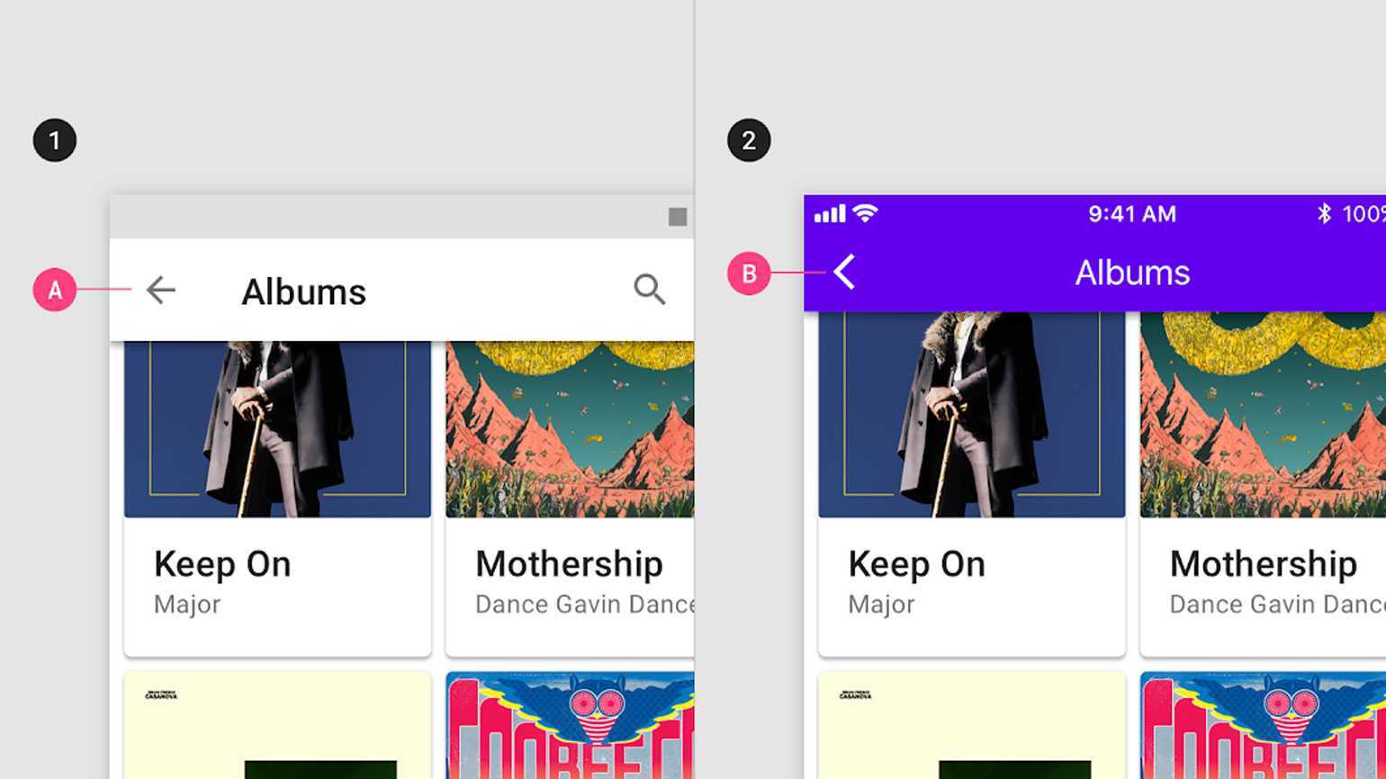 Кнопка «Назад» в верхней части экранаИзображение: Material Design