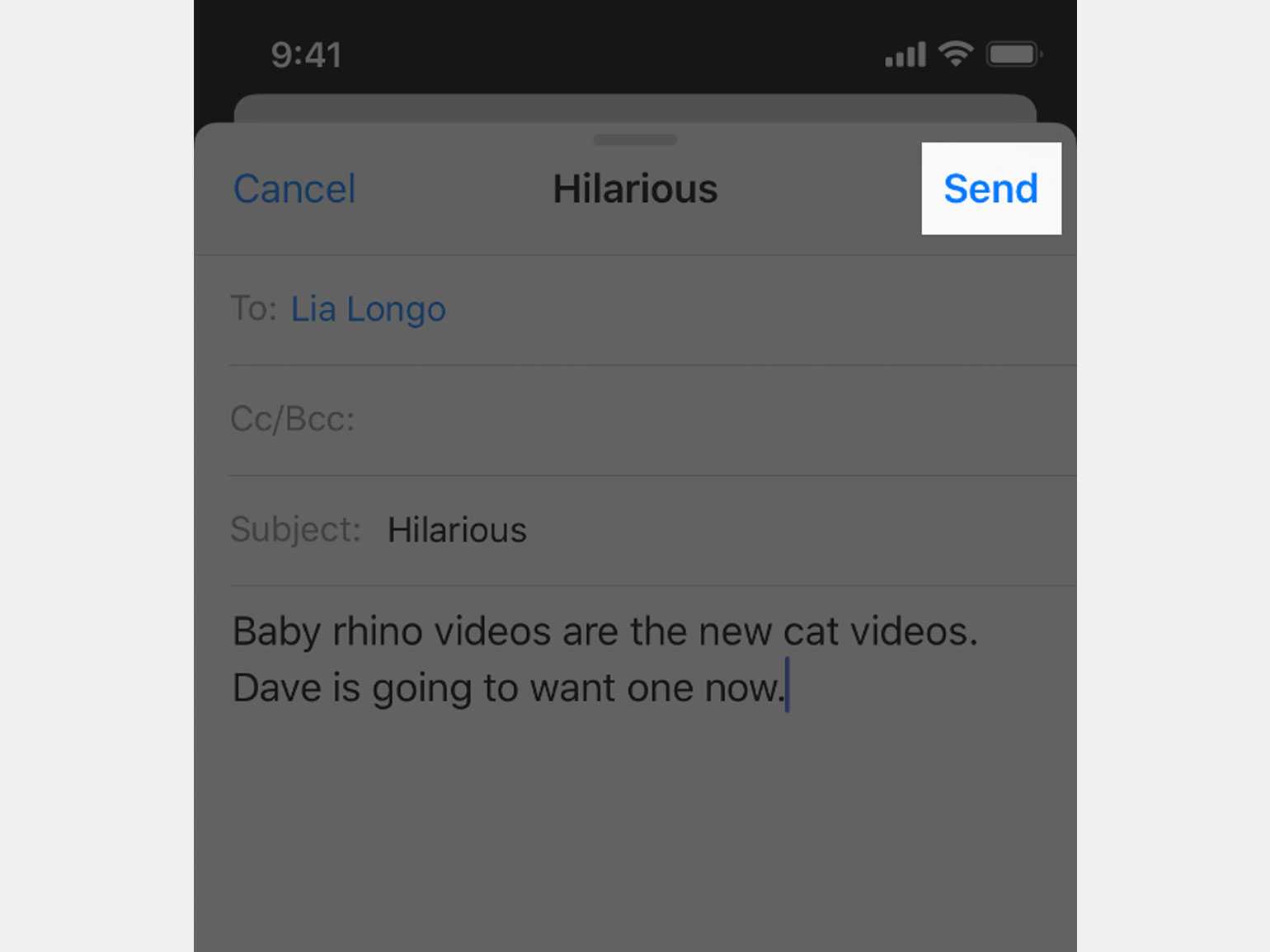 Кнопка действия ― отправки письма ― расположена в правом верхнем углуИзображение: Apple Human Interface