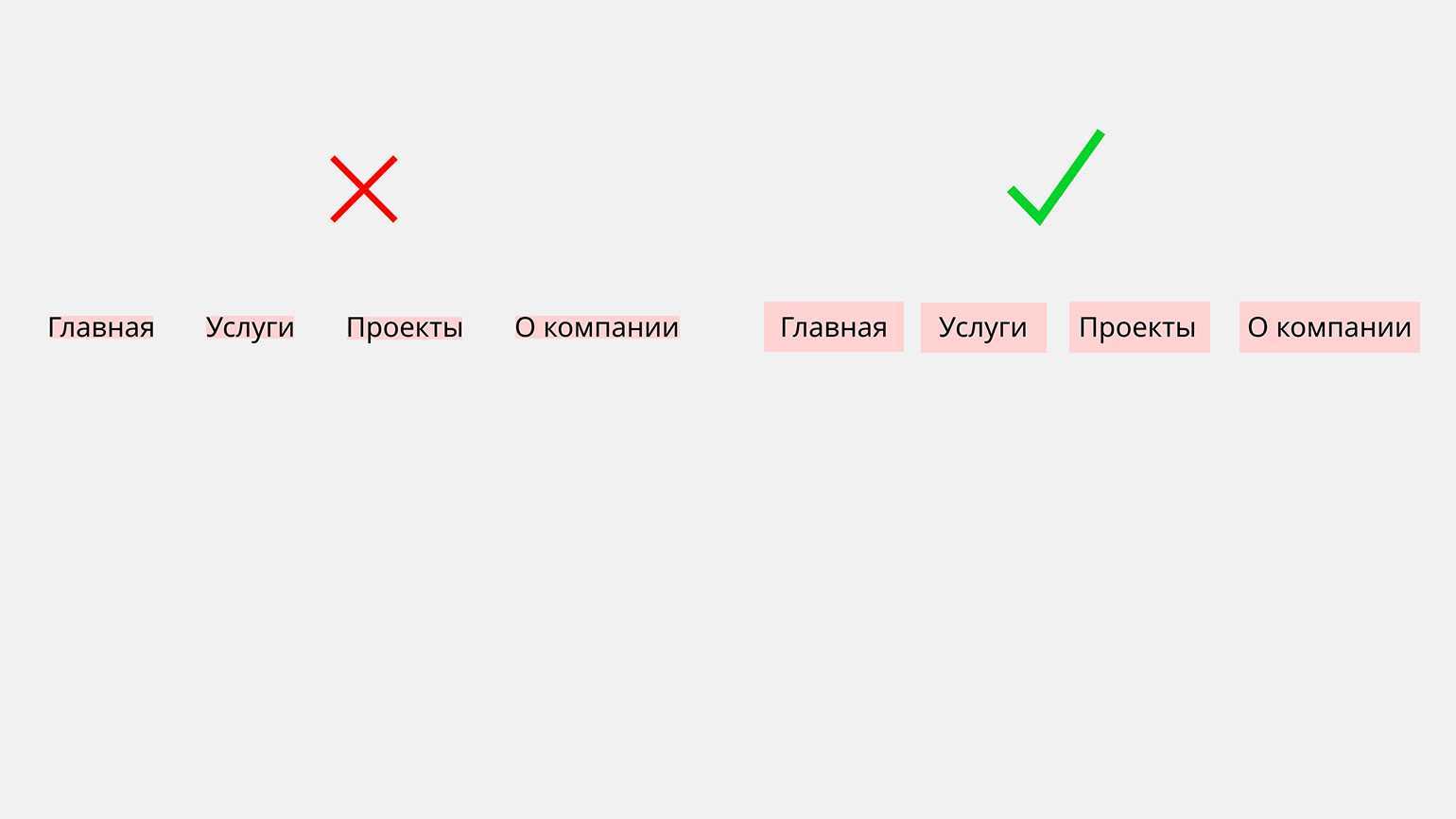 Если вы не можете сделать визуально кнопки или ссылки большими, просто увеличьте их область нажатия. Это никак не повлияет на внешний вид макета, но пользователю будет гораздо легче попадать по нужным ссылкам и кнопкам: