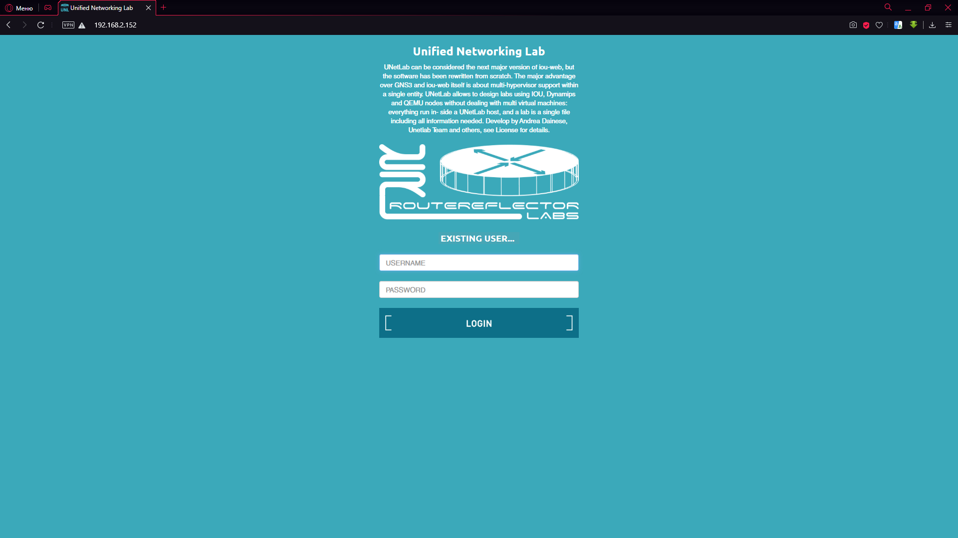 Если все получилось, у тебя откроется страница UNetLab. Логин — admin, пароль — url.