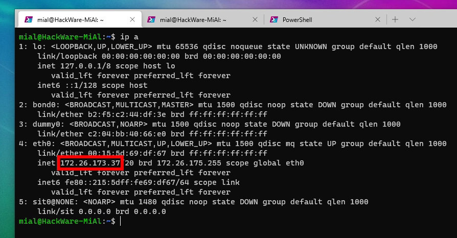 Что мне осталось непонятным — все запущенные дистрибутивы имеют один и тот же IP адрес. Более того, если запустить службу (открыть порт) на одном из дистрибутивов, то этот же порт окажется открытым и на всех остальных. Следовательно, например, не получится запустить веб-сервер одновременно на двух или более дистрибутивах… У всех дистрибутивах в WSL один сетевой интерфейс на всех.