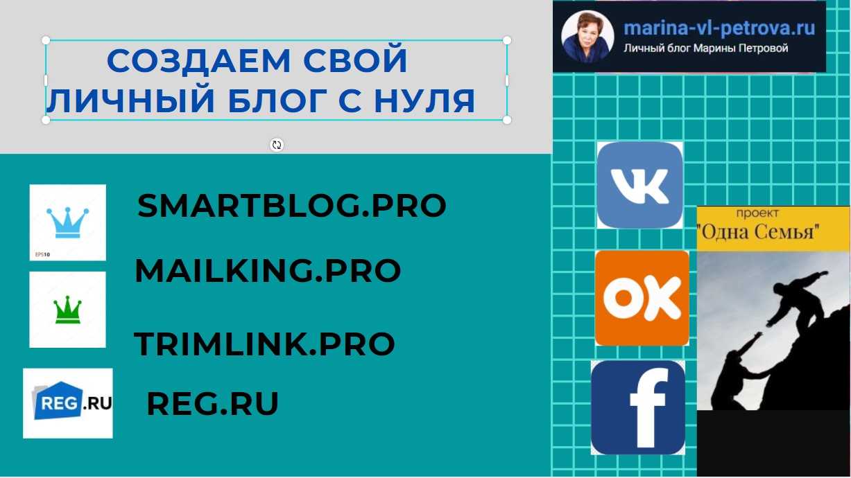 а). Цель, которую я ставил перед собой в начале обучения в проекте «Одна семья», была достигнута. Создан и функционирует мой собственный блог на https://smartblog.pro/. На этой платформе нет необходимости думать о программном обеспечении и функциональности плагинов их сроке годности, обновлении.