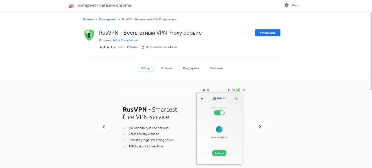 Расширение RusVPN сравнительно новое бесплатное расширение. Оно имеет ряд преимуществ по сравнению с конкурентами: скорость обмена данными, можно выбрать отечественные сервера, разблокировка всех сайтов, бесплатное использование, удобный интерфейс.
