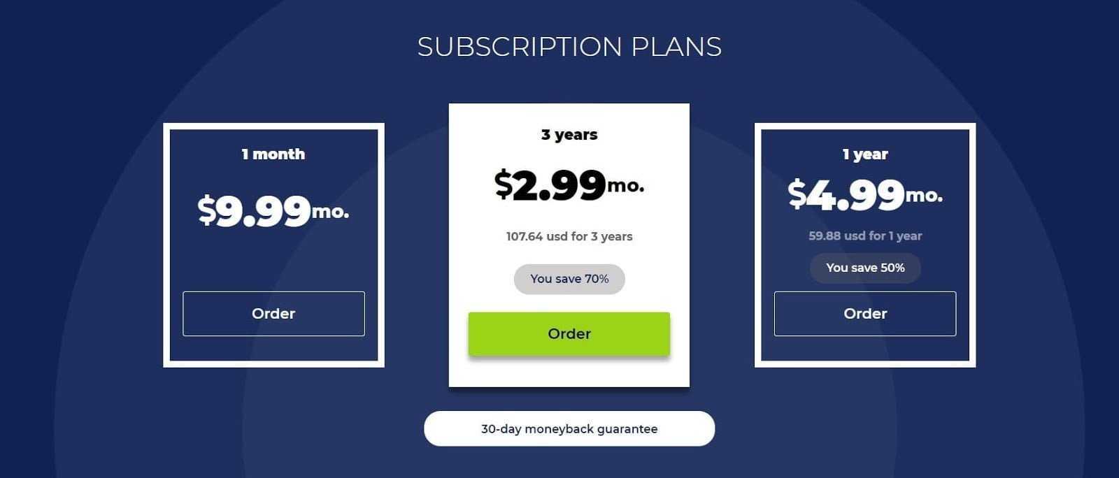 Если вы хотите использовать RUSVPN для настольного компьютера / ноутбука или маршрутизатора, вы можете выбрать один из трех планов подписки (бесплатной пробной версии нет). При ежемесячной подписке вы будете платить 9.99 доллара в месяц. Шестимесячная подписка стоит 41.94 доллара, что равняется 6.99 доллара в месяц. Наконец, если вы выберете годовую подписку, вы заплатите 59.88 доллара, что составляет 4.99 доллара в месяц. Существует также вариант подписки на 3 года, который стоит 107.64 доллара, что эквивалентно 2.99 доллара в месяц.