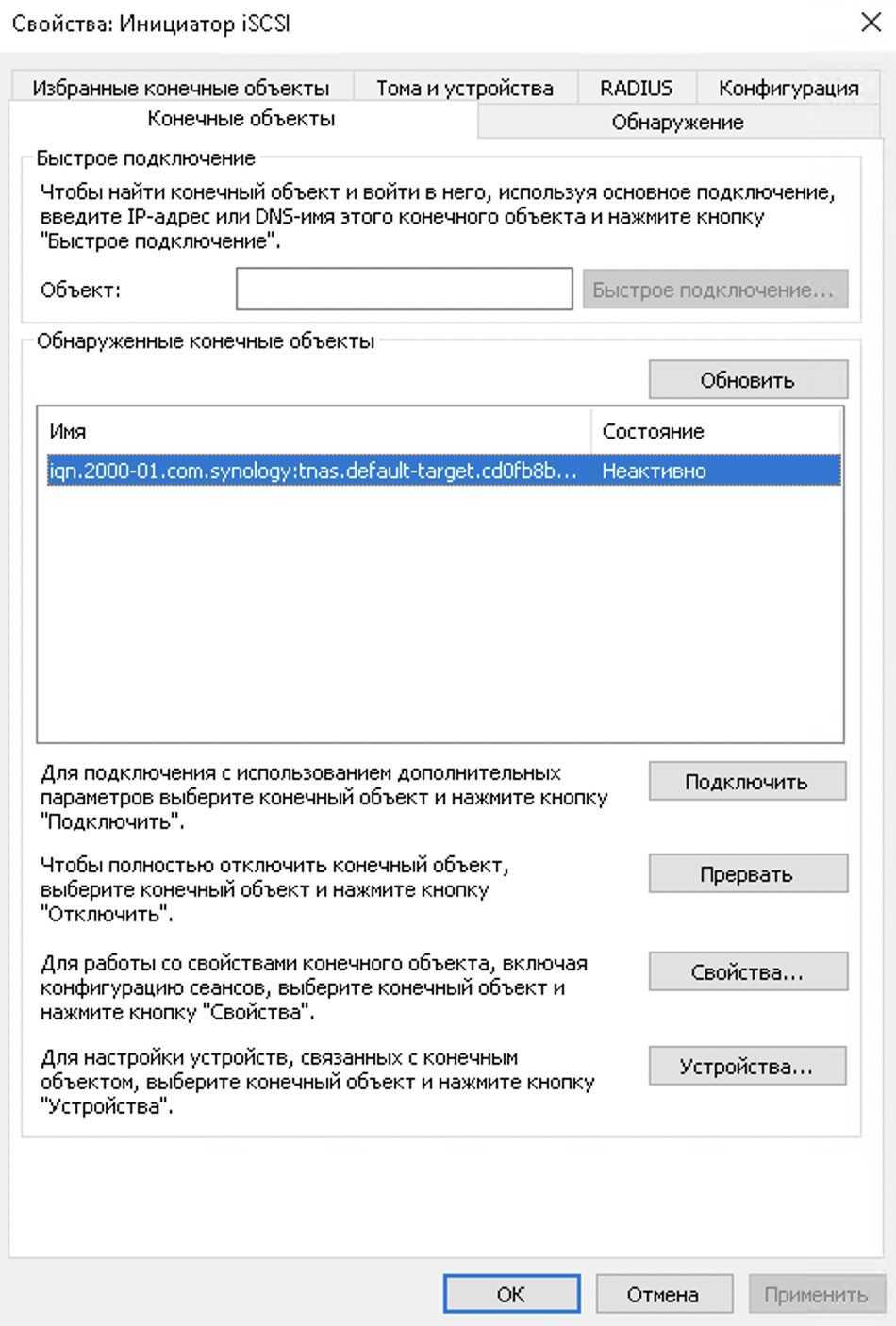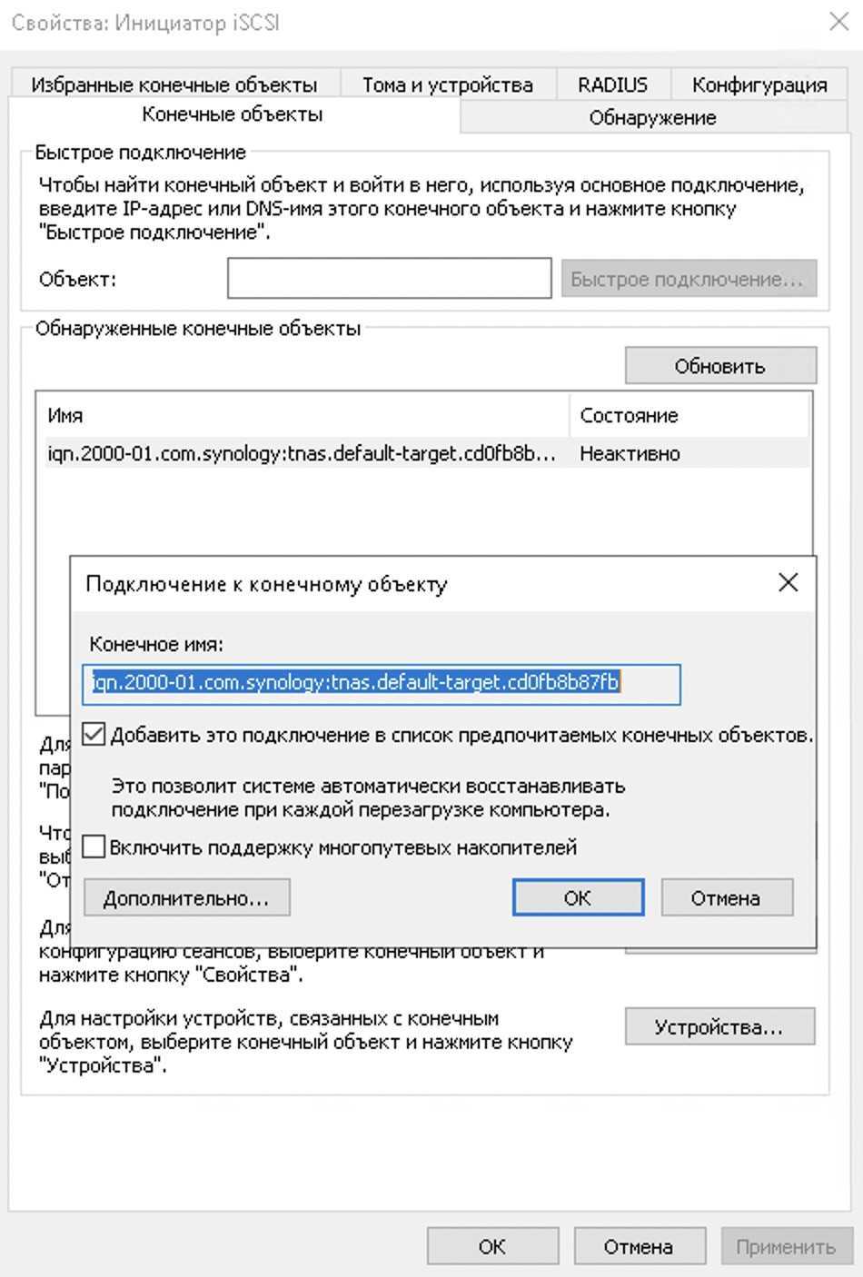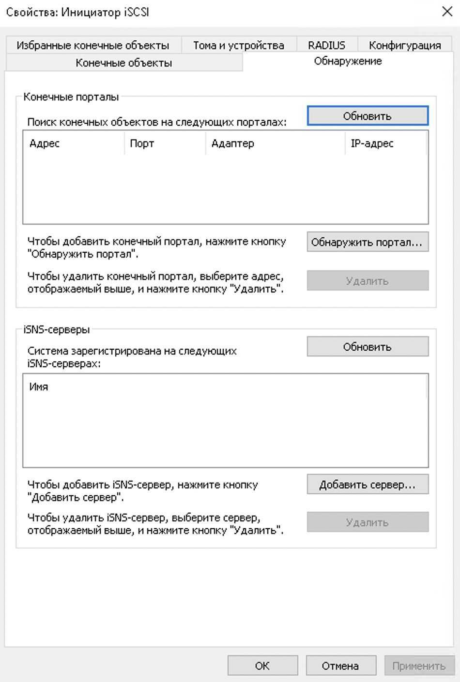 - Инициатор (initiator) — iSCSI-клиент, которому будет доступно хранилище;