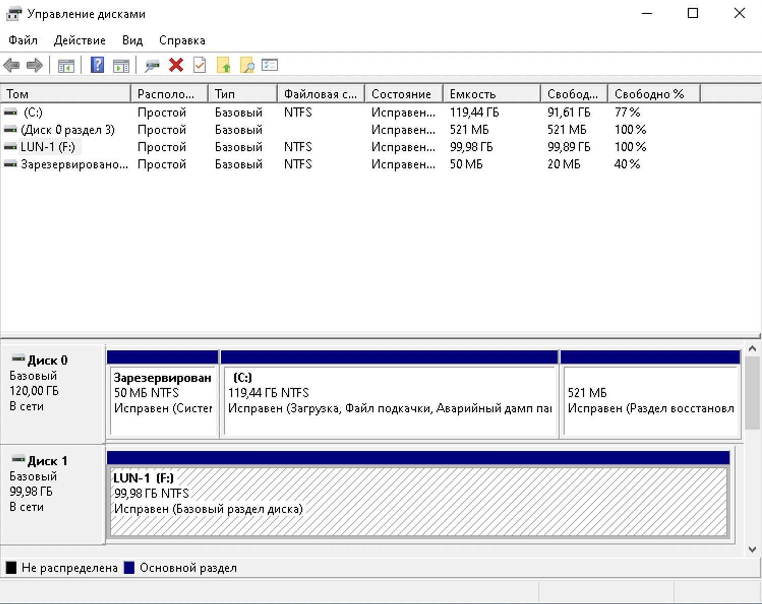 После этого в SAN Manager будет отображаться созданный нами LUN