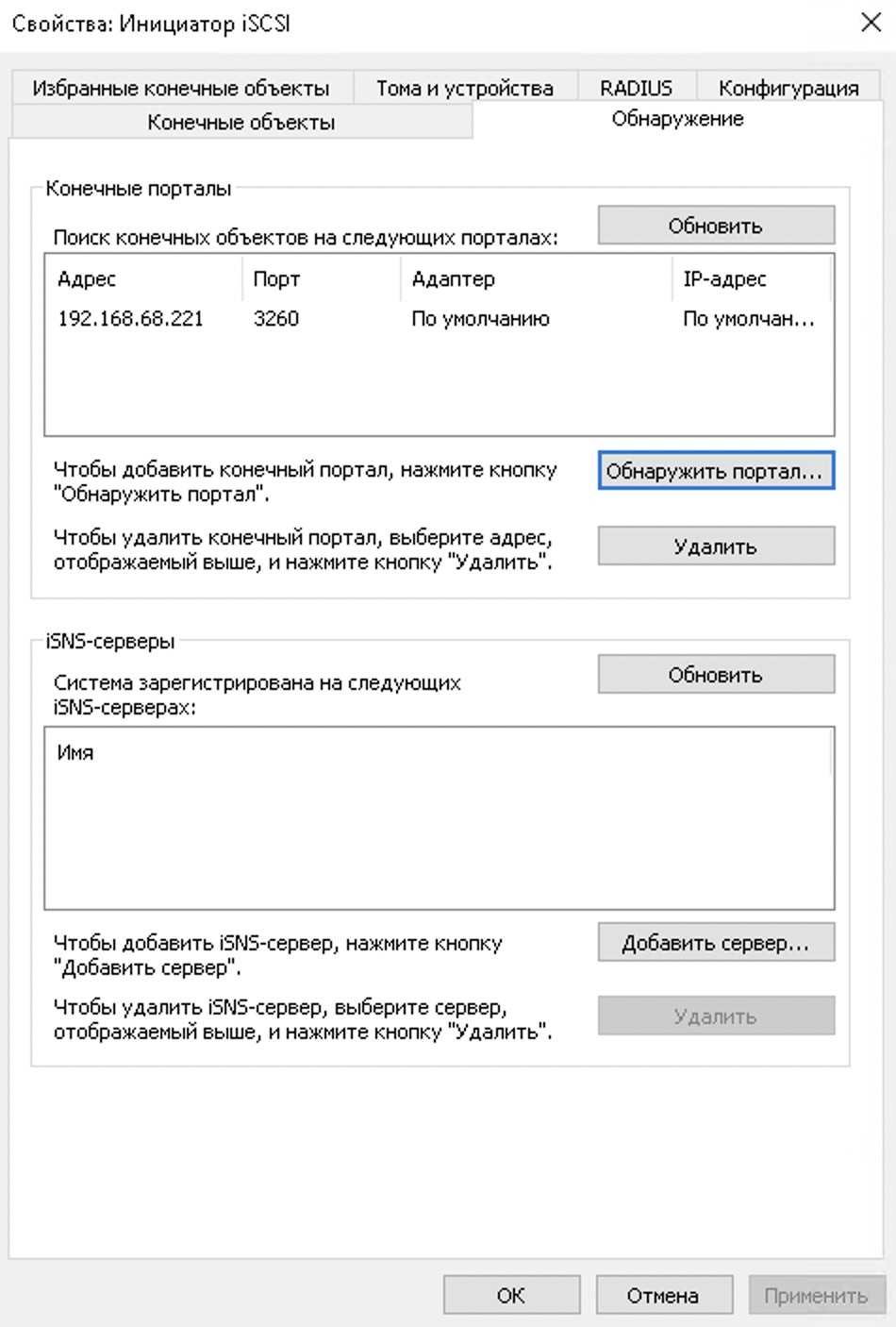 «3260» — это порт, используемый протоколом iSCSI по умолчанию