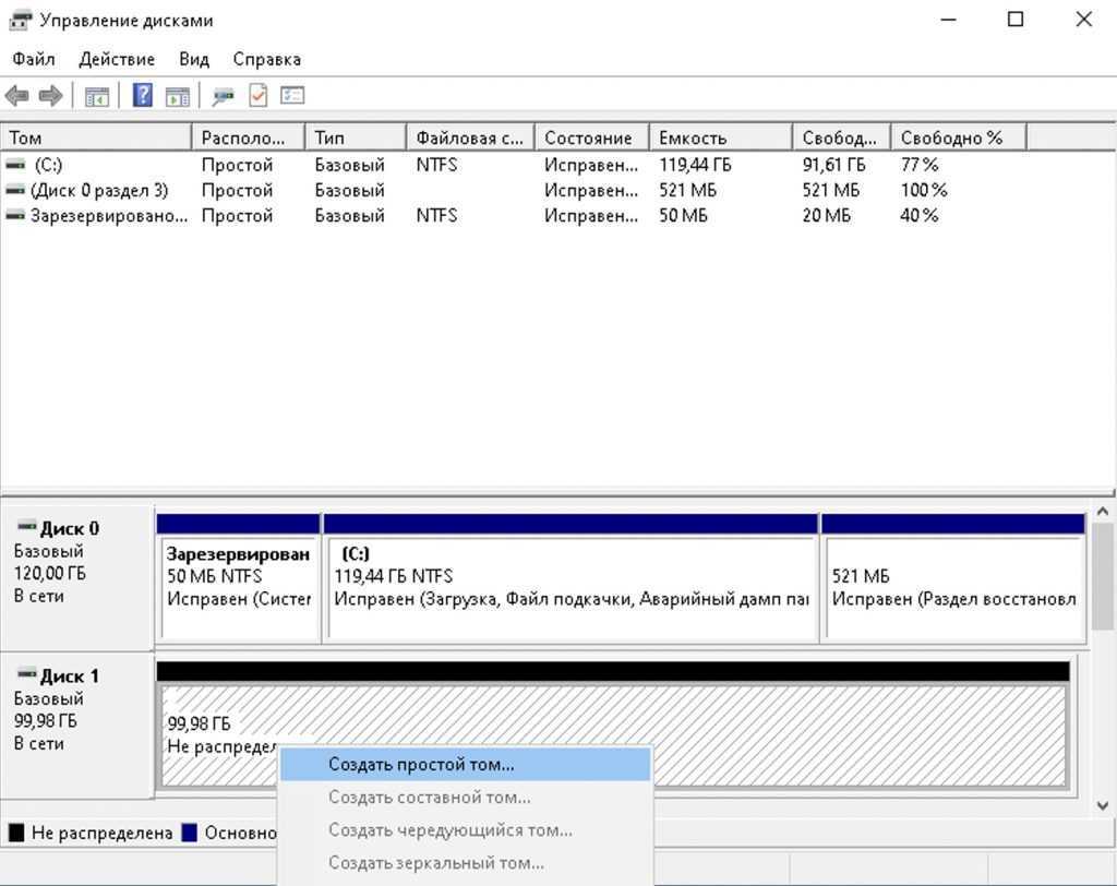 Щелкаем правой кнопкой мышки по нераспределенному месту и выбираем “Создать простой том”