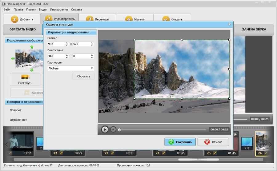 Кадрирование. Пользователи могут отредактировать любую неудачную запись с помощью кадрирования. Эта функция позволяет растянуть или сжать изображение, повернуть ролик в нужном направлении, а также отразить его по горизонтали или вертикали.
