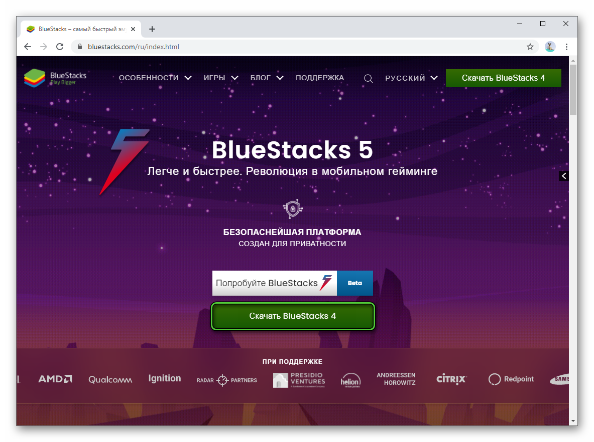 Для начала нужно скачать сам эмулятор BlueStacks на компьютер.