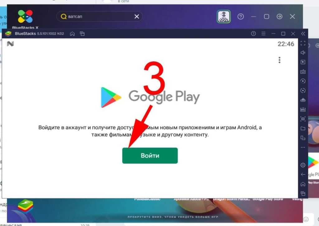 Загрузить «Вотсап» с Гугл Плей в эмуляторе.