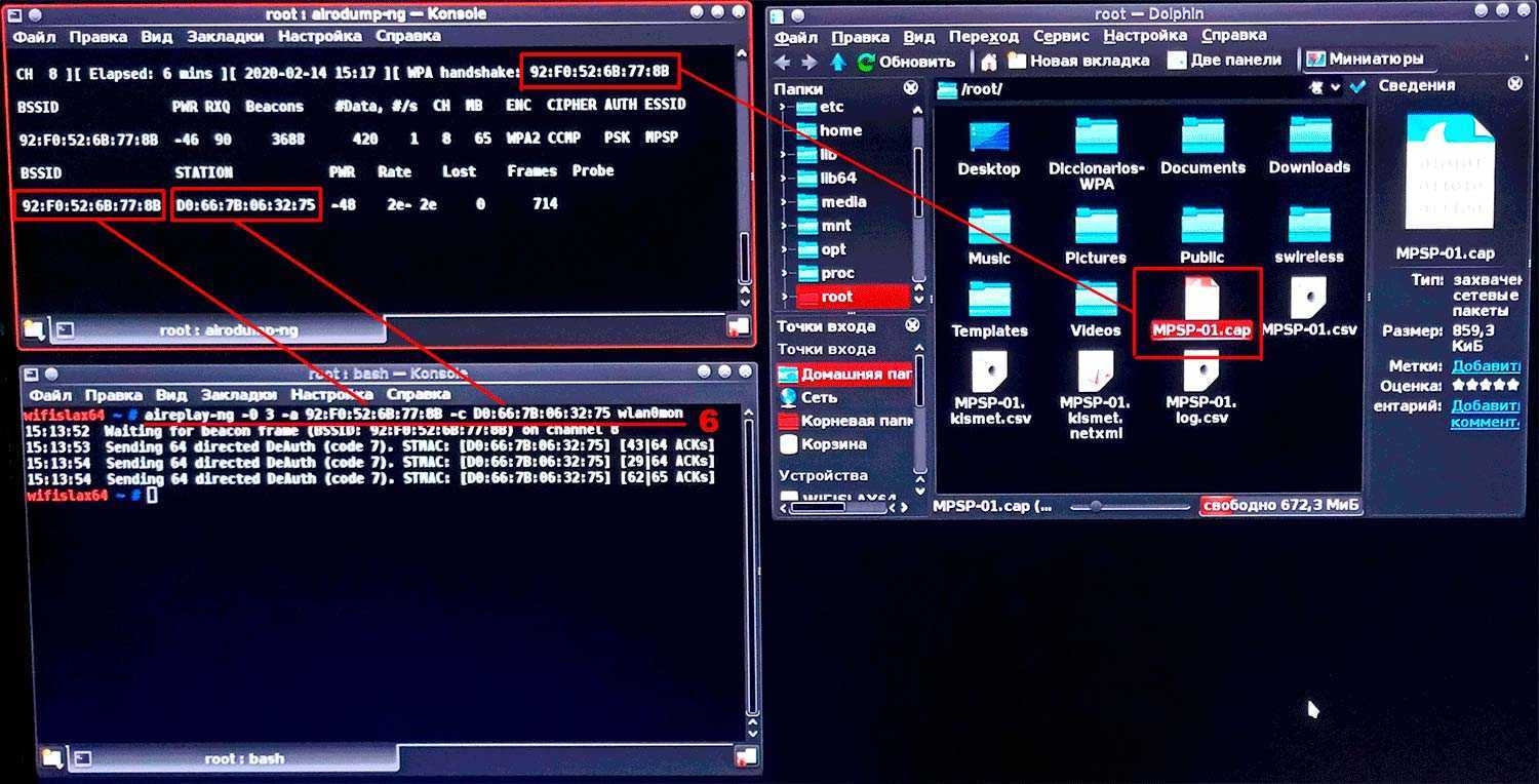 Файл с зашифрованным паролем, сохранится в папке пользователя root, под именем выбранной вами точки доступа, в моем случае это MPSP-01.cap