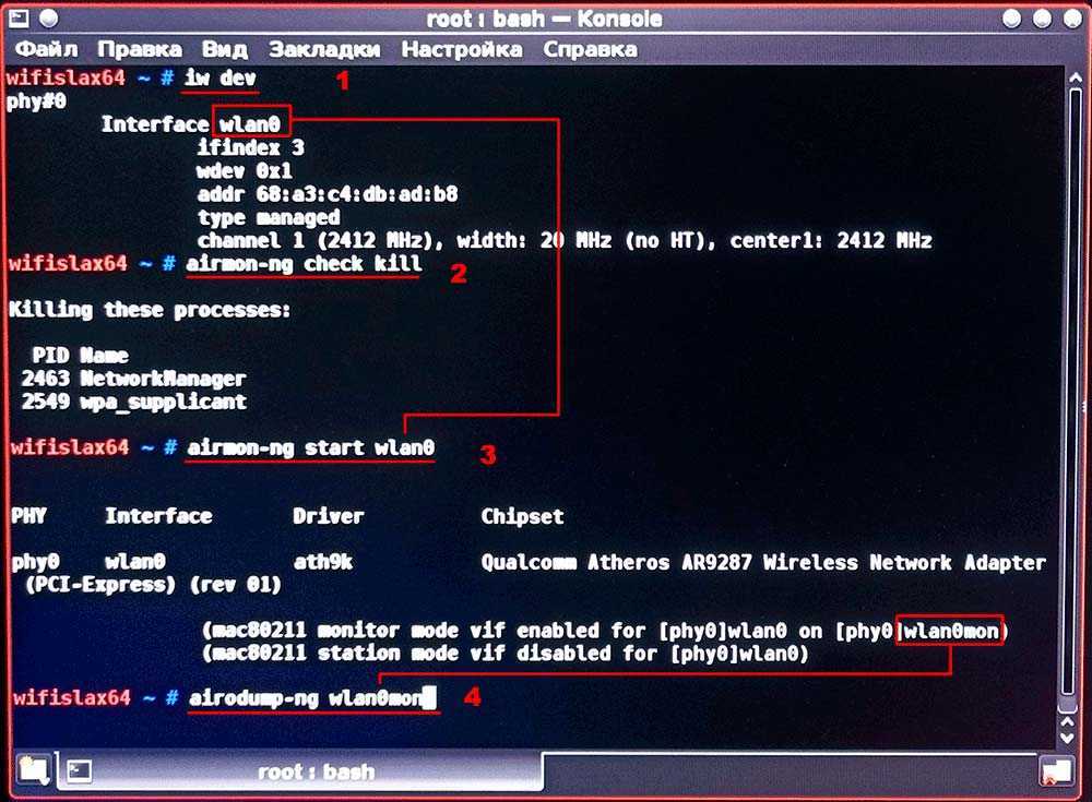 Я сознательно не использую утилиты с графическим интерфейсом, так как пошаговый ввод команд, более наглядно демонстрирует процесс получения пароля и не привязывает пользователя к отдельному дистрибутиву. То есть, вы можете использовать любую версию Linux с установленным набором утилит Aircrack-ng.