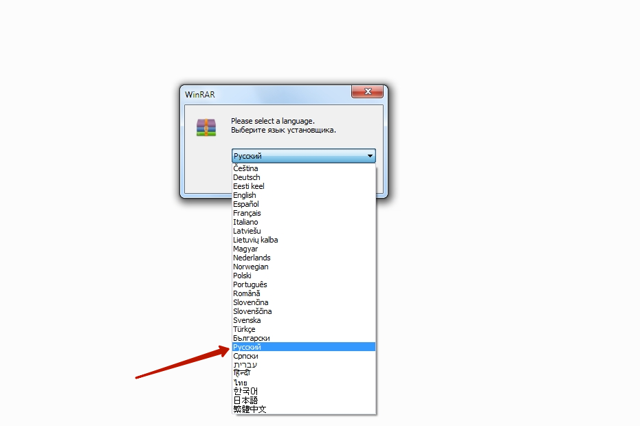 В процессе установки нужно обратить внимание на выпадающий список, который предлагает множество языков на выбор