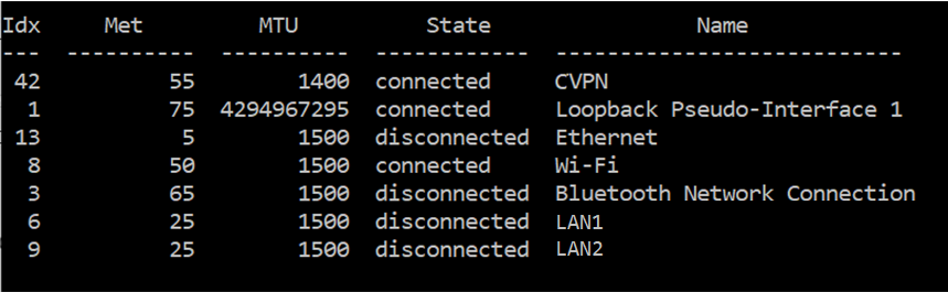В выходных данных этой команды перечислены интерфейсы на компьютере, как показано ниже.