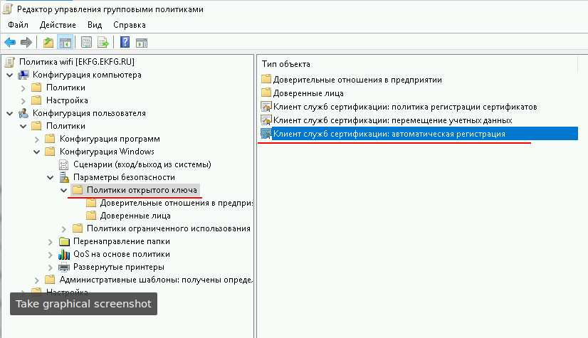 Теперь клиентские хосты, которые введены в домен, при загрузке получат пользовательский сертификат и смогут с его помощью авторизоваться в Wi-Fi сети.